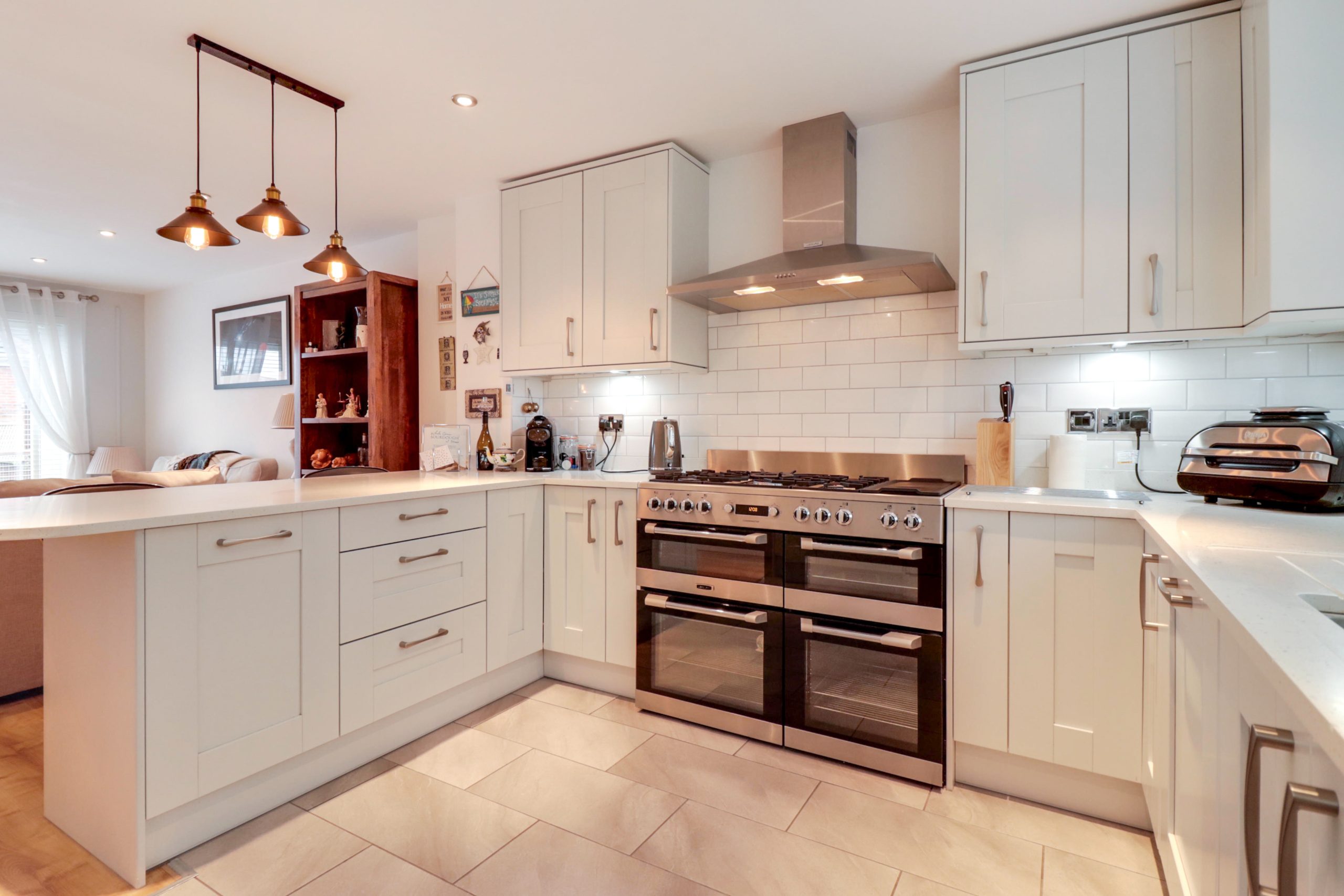 Open plan kitchen/breakfast room with modern fitted kitchen. Integrated fridge/freezer, dishwasher and washing machine