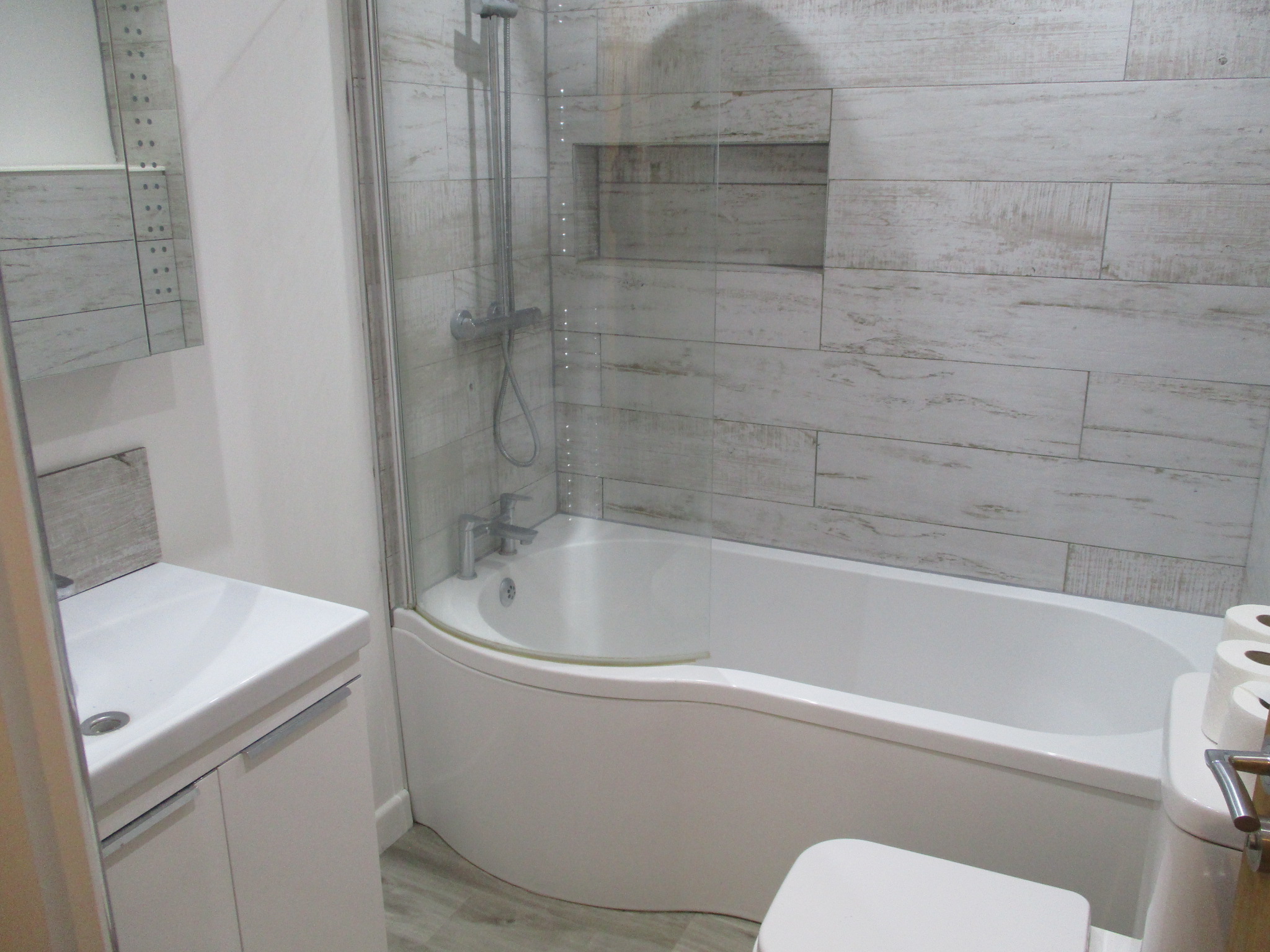 Bathroom with Shower over P Shaped Bath