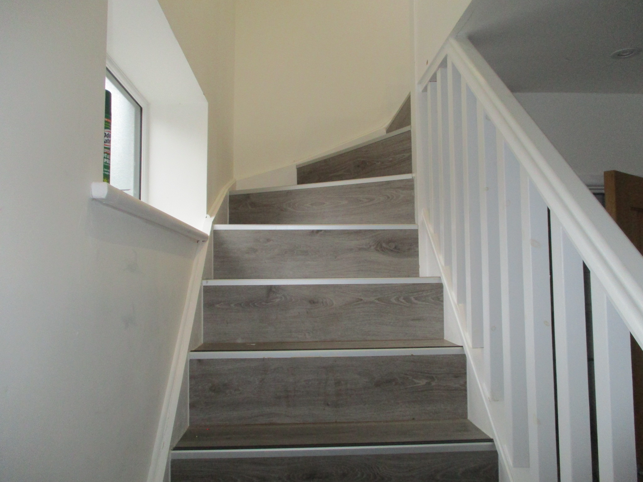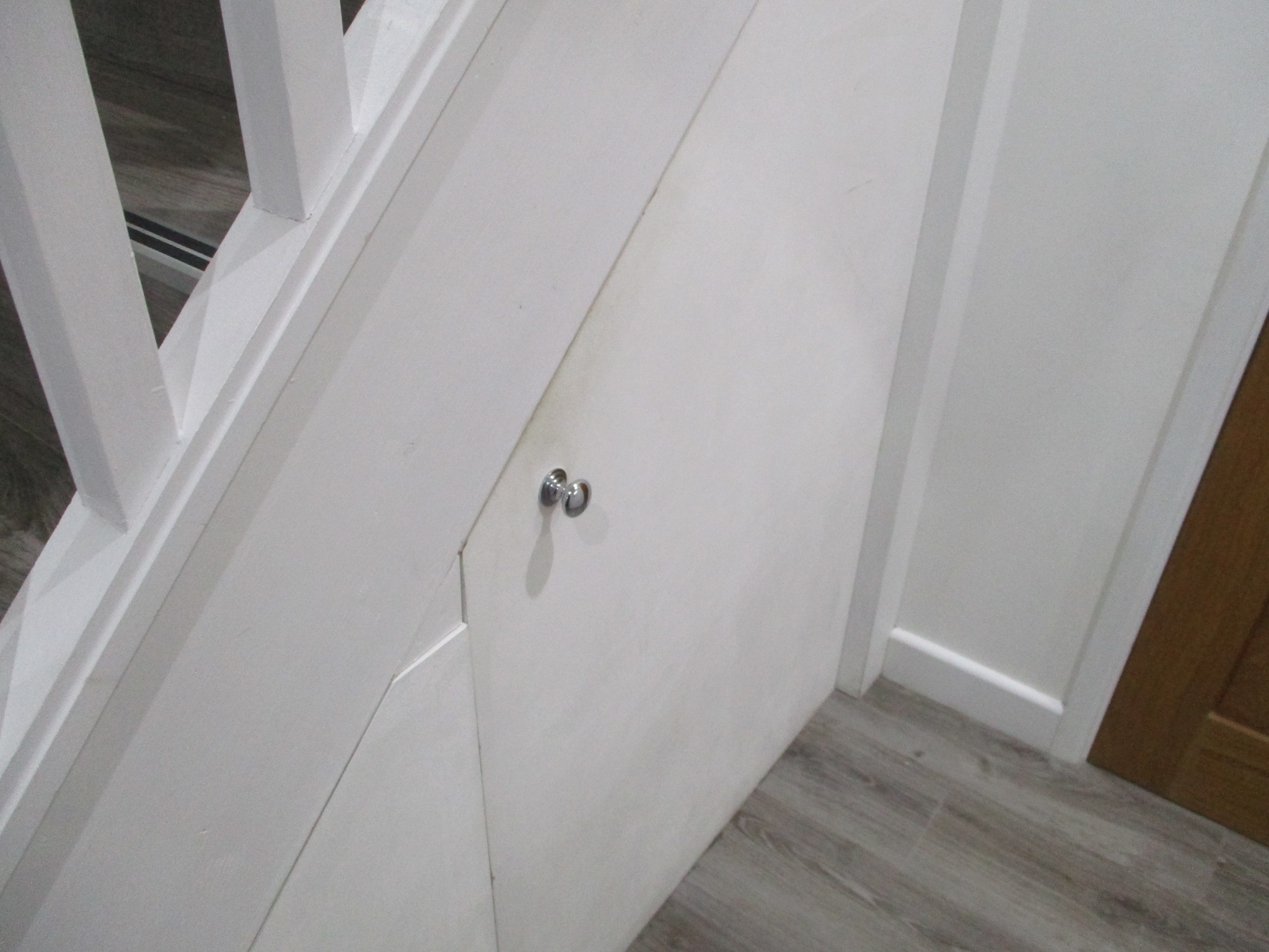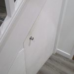 Hall with cupboard housing boiler and free-standing washing machine & freezer